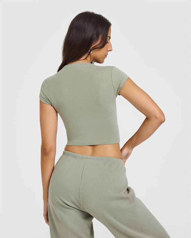 Cotton Baby T-Shirt with Printed Logo Soft Sage Green