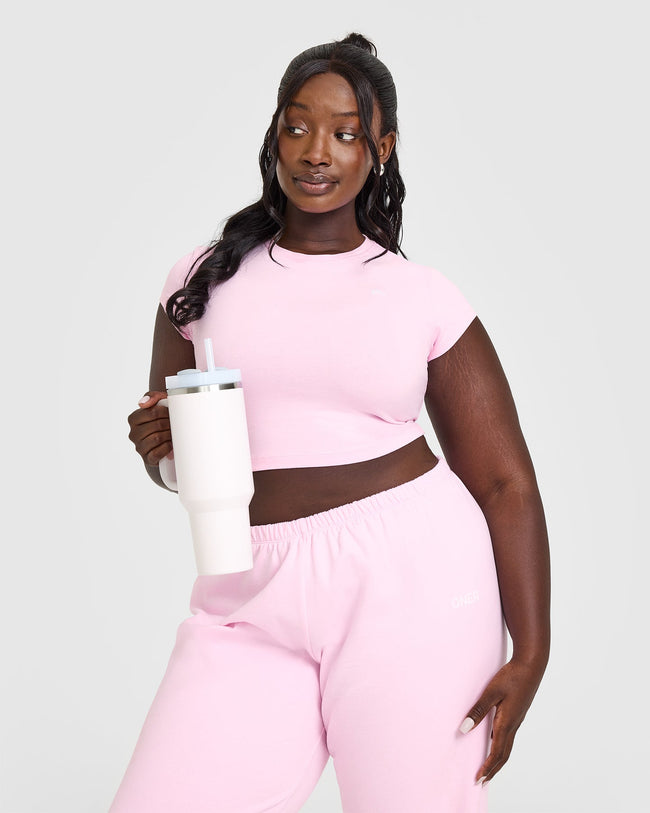 Cotton Icon Baby T-Shirt with White Logo Chalk Pink