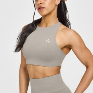 | High neck sports bra with high front coverage | |
