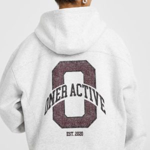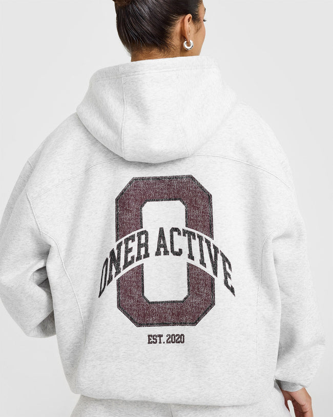 Foundations Oversized Hoodie With Large Printed Graphic Light Grey Marl