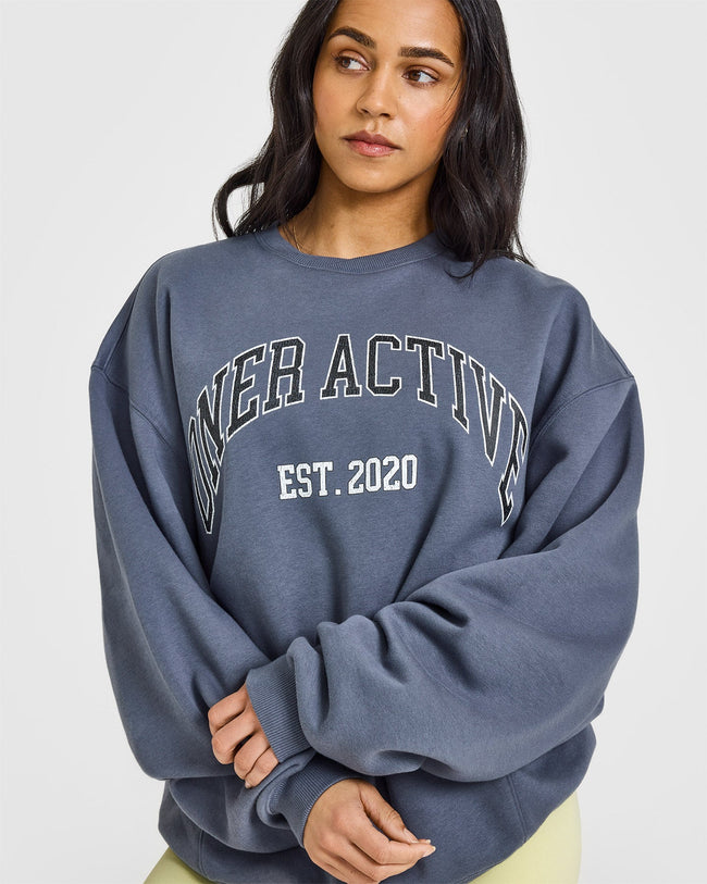 Foundations Oversized Sweatshirt With Large Printed Graphic Granite Blue