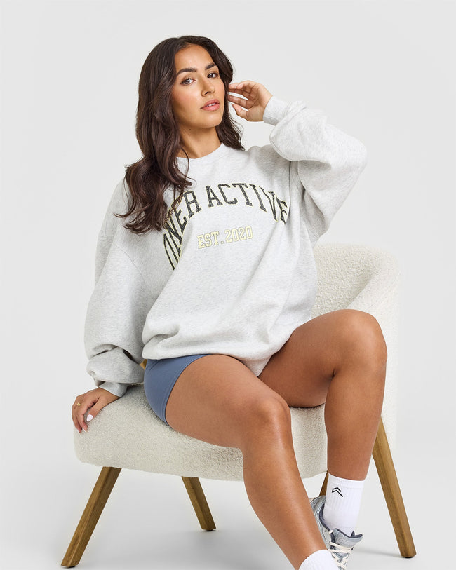 Foundations Oversized Sweatshirt With Large Printed Graphic Light Grey Marl