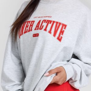 Lightweight Sweatshirt with Red Graphic Light Grey Marl