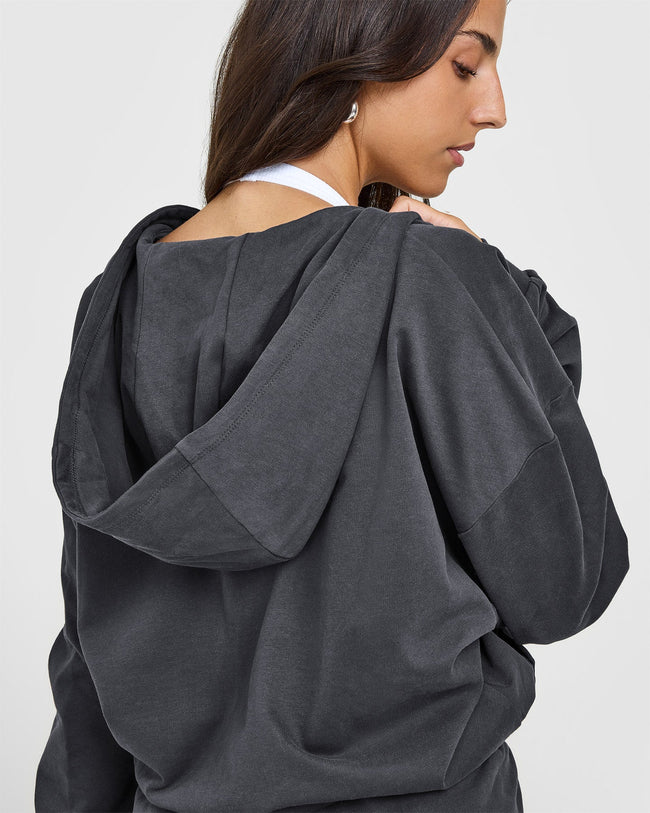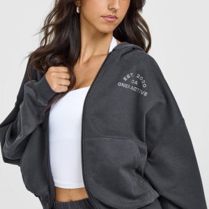 Lightweight Zip Through Hoodie with Graphic Coal