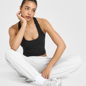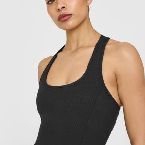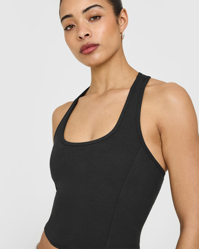 Mellow™ Rib Square Neck Mid Vest with Built in Bra Shelf Soft Black