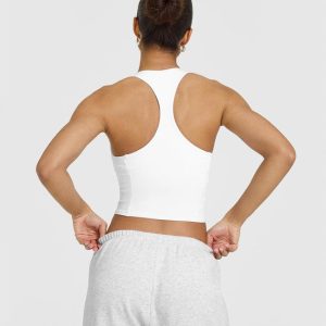 Mellow™ Rib Square Neck Mid Vest with Built in Bra Shelf White