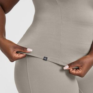 Mellow™ Rib Square Neck Mid Vest with Built in Bra Shelf Chalk Pink