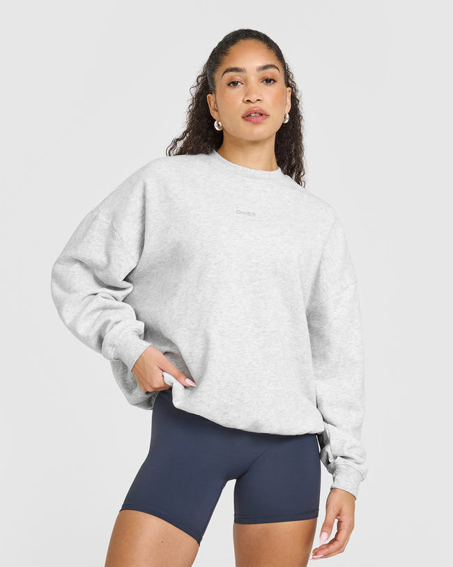 Foundations Oversized Hoodie With Large Printed Graphic Light Grey Marl