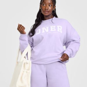 Mid Weight Sweatshirt With Printed Logo Lavender Purple