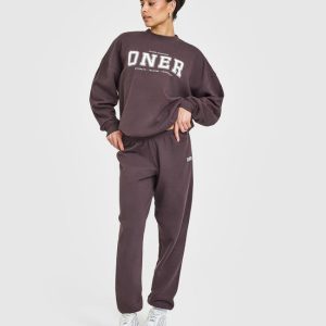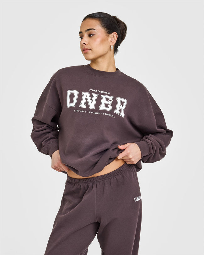 Mid Weight Sweatshirt With Printed Logo Umber Brown