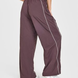 Oversized Piped Woven Straight Leg Track Bottoms Deep Umber Brown