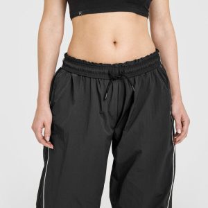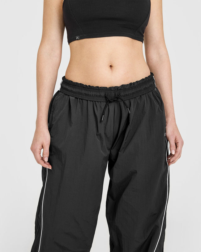 Oversized Piped Woven Straight Leg Track Bottoms Soft Black