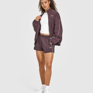 Oversized Piped Woven Track Jacket Deep Umber Brown