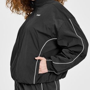 Oversized Piped Woven Track Jacket Soft Black