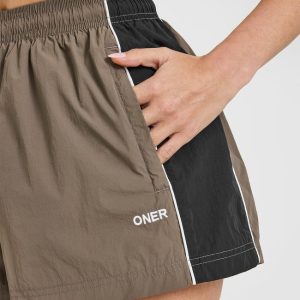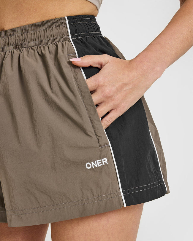 Oversized Piped Woven Straight Leg Track Bottoms Deep Umber Brown