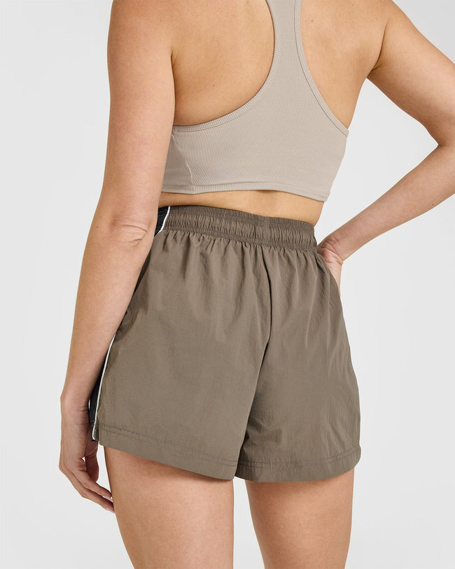 Oversized Piped Woven Track Shorts Moss Brown