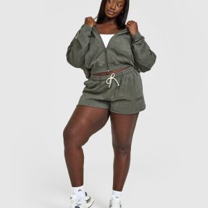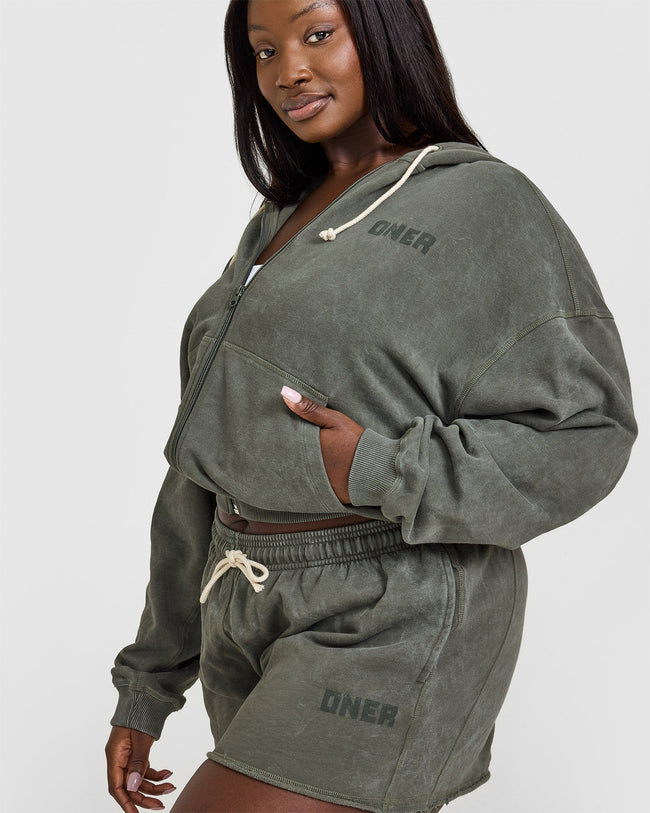 Raw Lounge Oversized Zip Hoodie Washed Dark Khaki