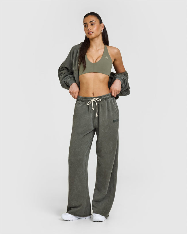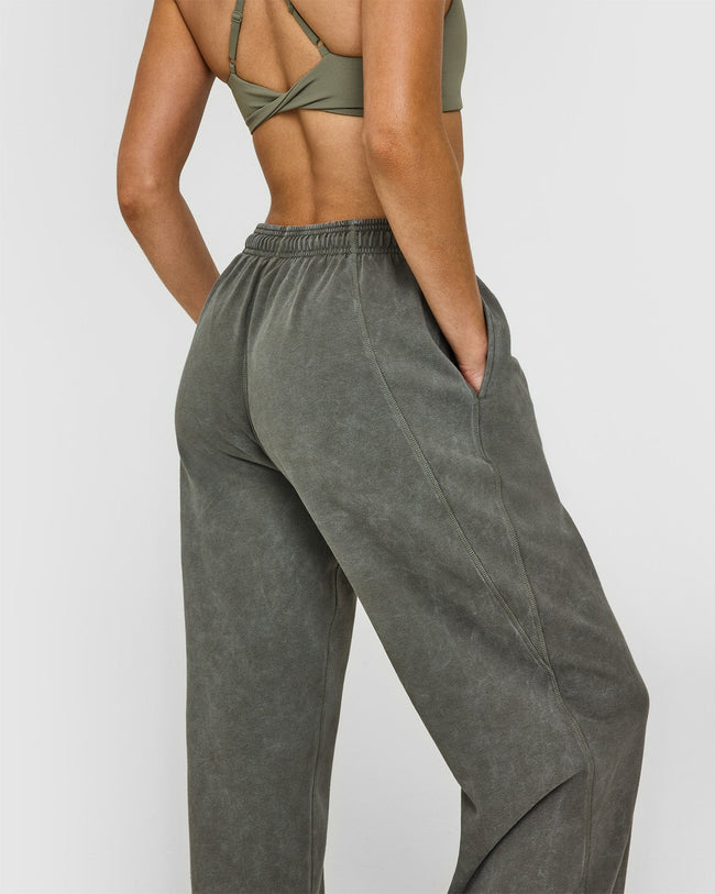 Raw Lounge Wide Leg Joggers Washed Dark Khaki
