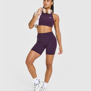 Unified High Waisted Shorts White Logo 6″ Blackberry Purple