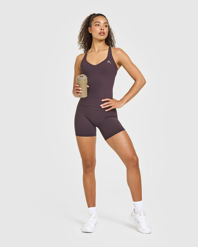 Unified V Neck Cross Back Vest Dark Umber Brown